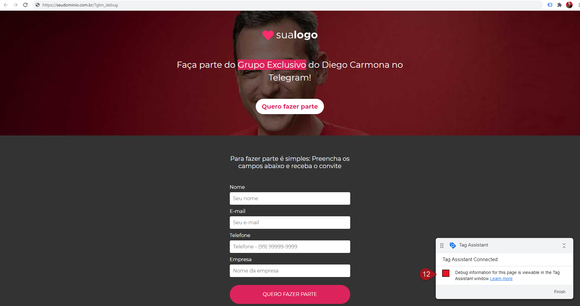 Nº13– Volte agora para a aba do Tag Assistant e clique em “Continue”.