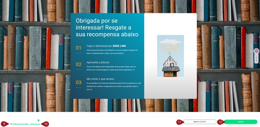 Nº10– Ao clicar aqui, o lead poderá acessar a página de Termos de Uso que você configurou no passo 05 deste tutorial.
