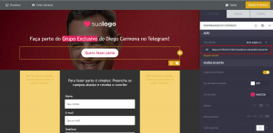 Nº1– Dentro do editor da página, clique em cima do botão.