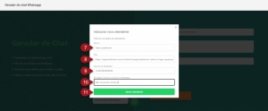 7 – Na configuração do contato, você irá adicionar um nome para o atendente deste chat.
