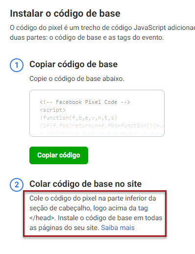 Observe que a instrução é quase sempre a mesma: adicionar o script (a tag, o pixel, o código) na Head ou no Body.