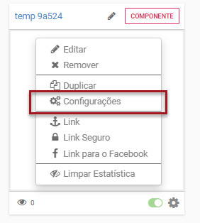 Dentro da aba Páginas da máquina, localize a página e clique em Configurações.