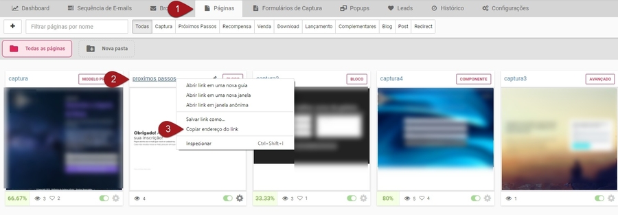 Objetivo: explicar com mais detalhes como são estruturados os links de páginas construídas na leadlovers e também como pegar o link de uma página desejada. Para que serve: possuir o link da sua página permite a divulgação, o acesso e envio para que a mesma seja acessada.