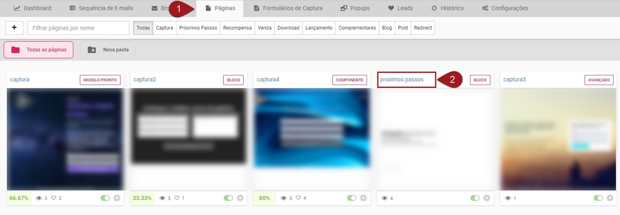 Nº2– Acesse a página desejada clicando em sobre a mesma. Essa ação abrirá sua página em uma nova aba do navegador.
