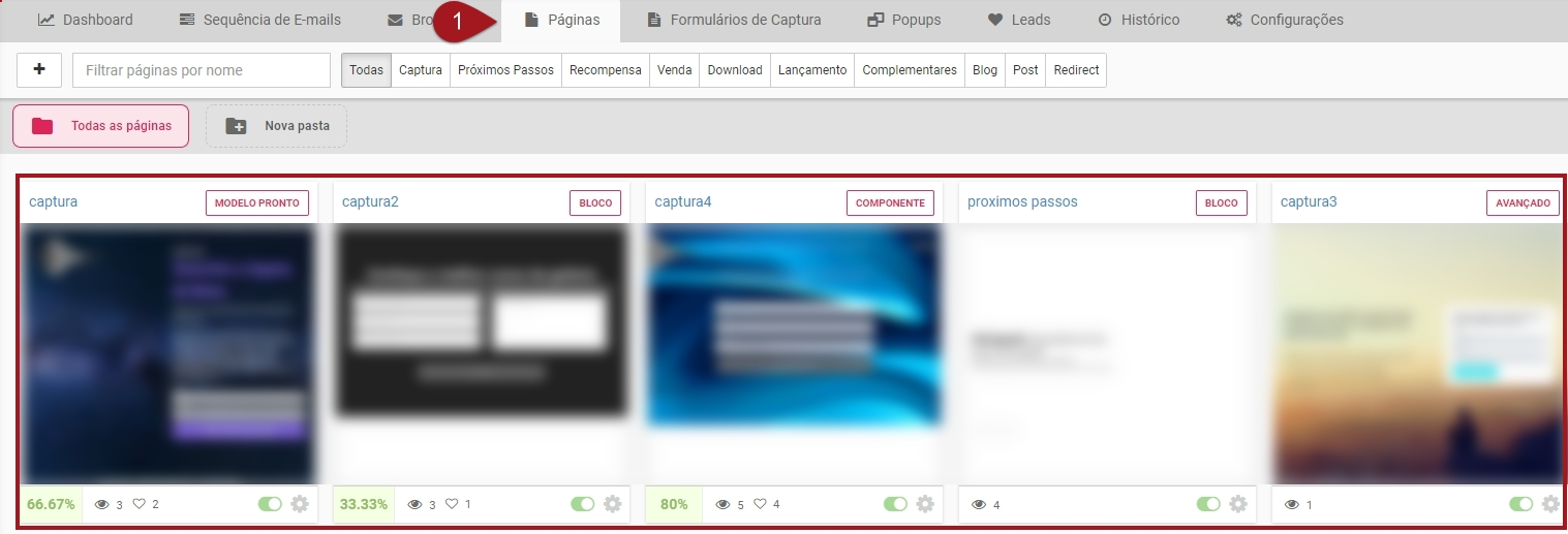 Nº1– Acessando a aba Páginas podem ser encontradas miniaturas referentes às páginas construídas na máquina acessada.