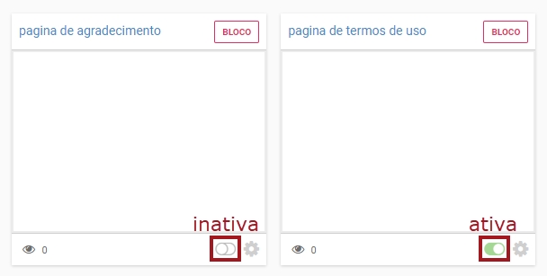 Nº3– Para desativar uma página basta utilizar o interruptor que existe abaixo da miniatura da mesma.