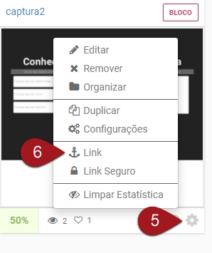 Nº6– Clique sobre “Link” e então abrirá uma nova página com o link da página escolhida.