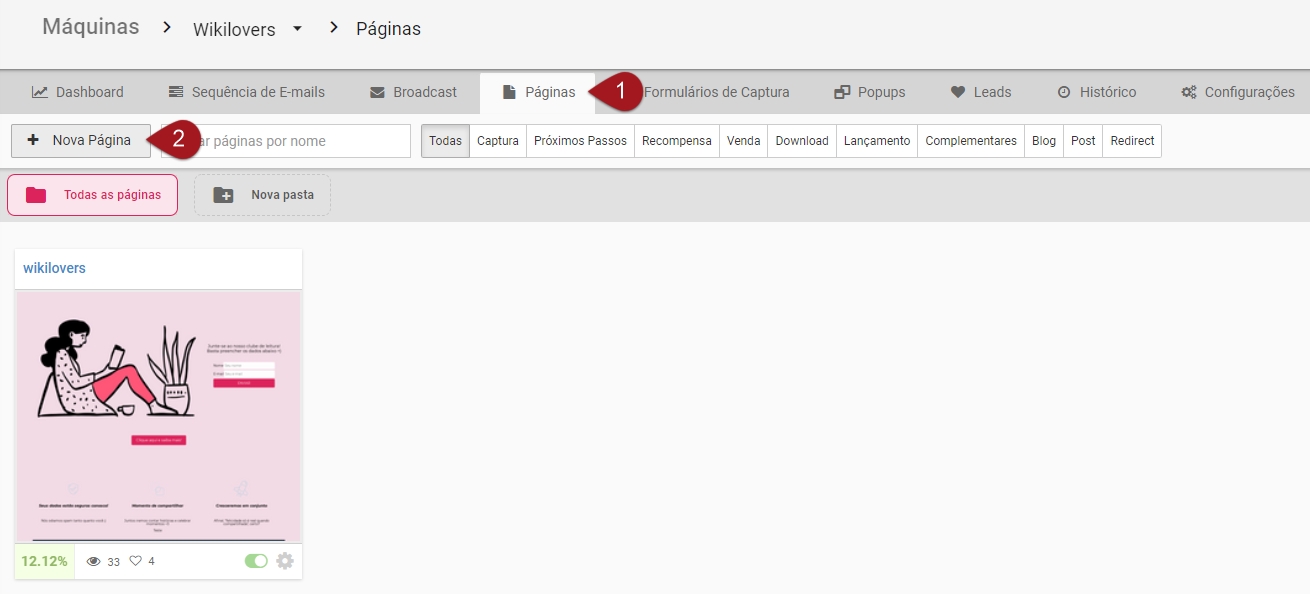 Nº1– Dentro da sua máquina, acesse a aba “Páginas”.