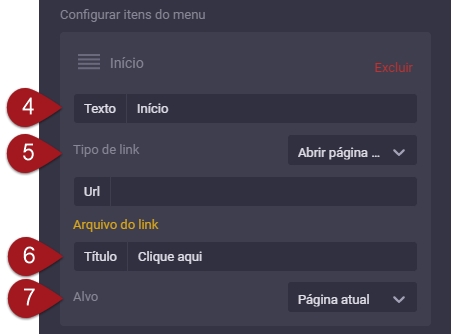 Nº4– Em “Texto”, insira o nome que aparecerá no menu.