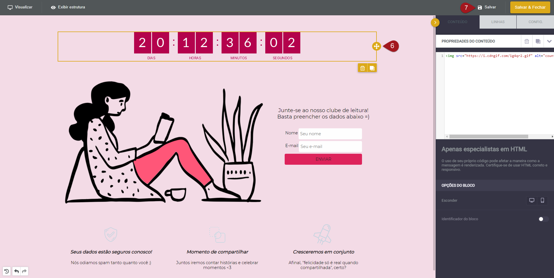 Como inserir um contador de escassez no editor por Componentes
