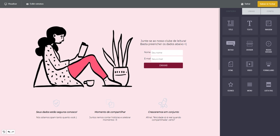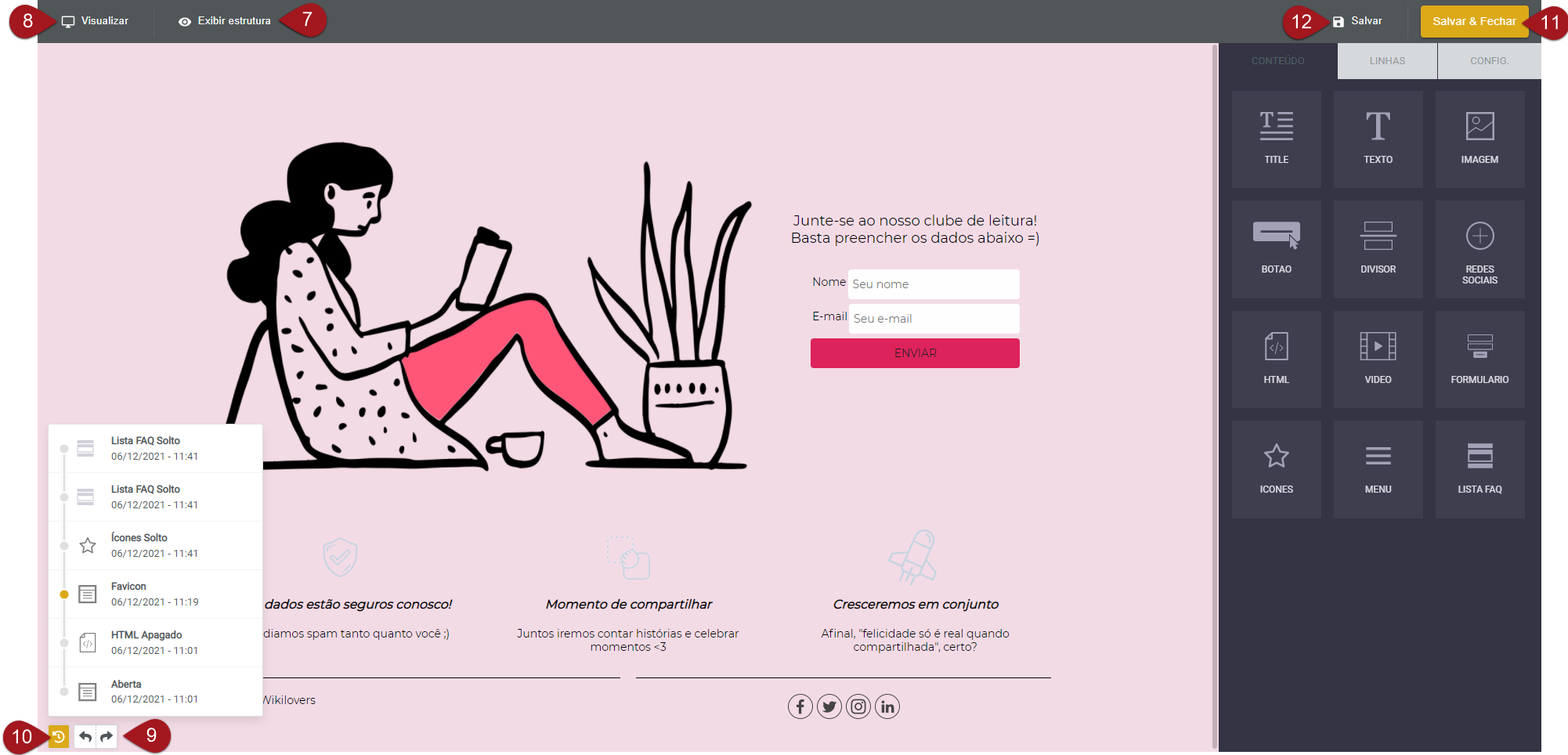 Assim você poderá entender melhor o editor e criar páginas mais atraentes para seus contatos!