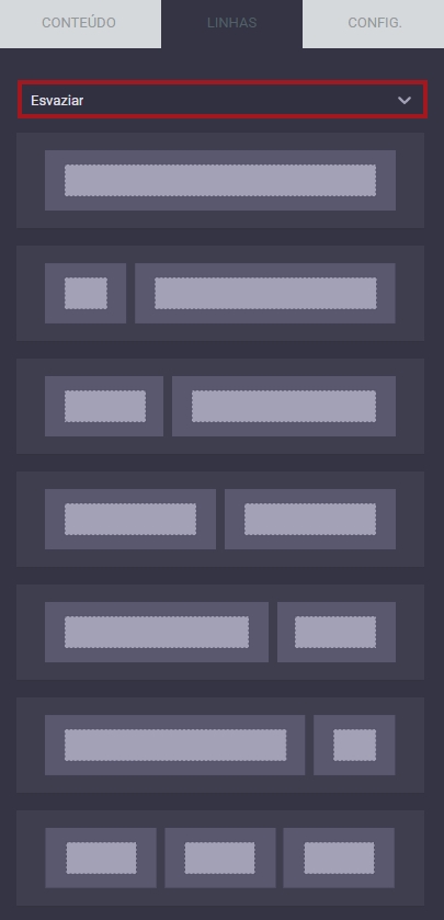 Além disso, você pode mudar a visualização para “Esvaziar”. Dessa forma, é possível ver a disposição que ficará o conteúdo, mas não há nenhum pré-inserido. Essa disposição pode ser alterada mais tarde.