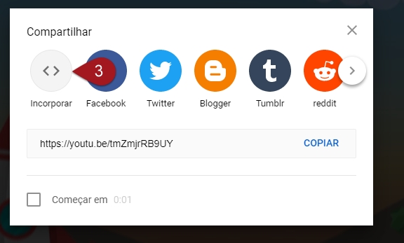 2- Clique no botão “Compartilhar” logo abaixo do vídeo