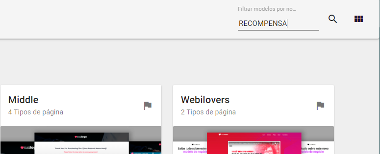 Utilizando a busca, colocando o nome Recompensa ou Ebook aparecerá os modelos disponíveis.
