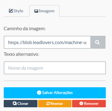 – Clicando em Detalhes < em uma imagem : Clicando em “Caminho da imagem” você consegue alterar a imagem do bloco.