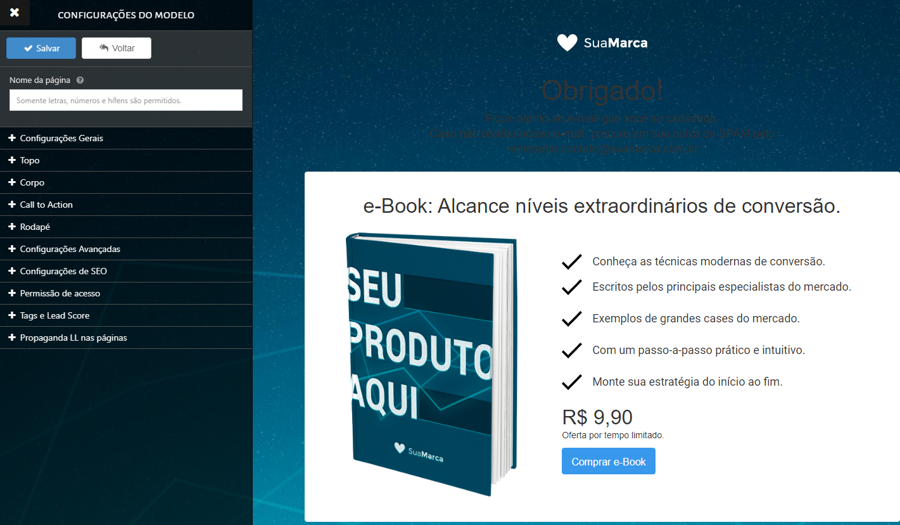 Modelos prontos são páginas pré configuradas, pronta para uso. existem alguns modelos disponíveis para utilizar como página de recompensa/ ebook.
