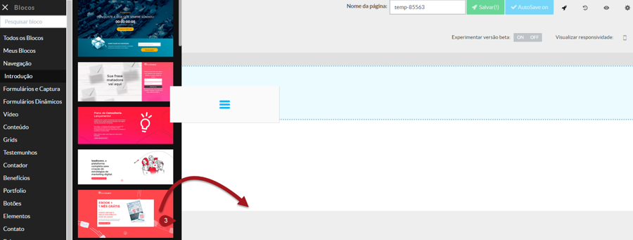 Nº 3 Após escolhido arraste o bloco que deseja para o meio da página.