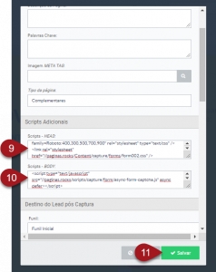 9 – Insira o código do campo HEAD, que copiou do seu formulário dinâmico.
