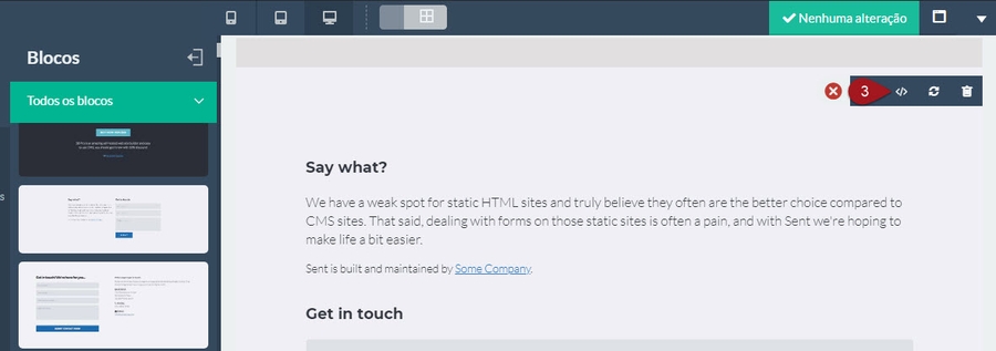 Nº 3 – Clique no botão </> para abrir o código HTML do bloco