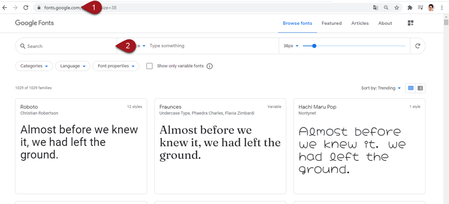 Nº2– No campo Search, busque pelo nome da fonte que deseja utilizar.