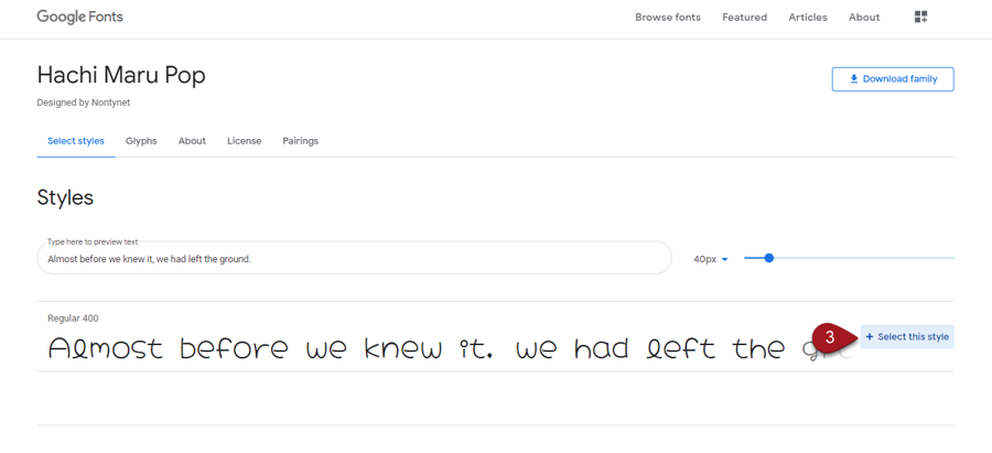 Nº3– Depois de ter escolhido a fonte, clique em Select this style.