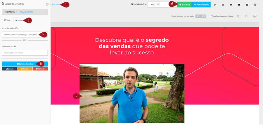 Objetivo: Mostrar o passo a passo de como colocar o autoplay em um vídeo do Youtube ou Vimeo nos editores de páginas da leadlovers. Para que serve: O autoplay permite que assim que o lead entre na página, o vídeo seja executado automaticamente.