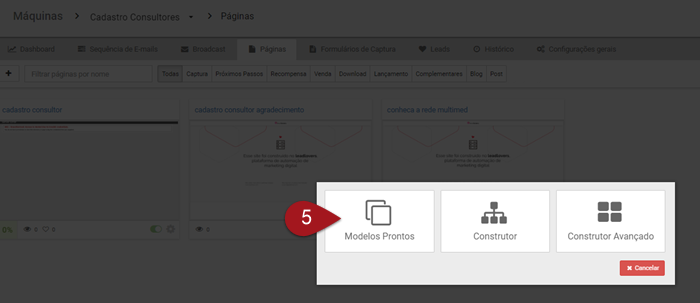 Nº 7 Após seleciona o modelo pronto de página de captura desejado, clique em Usar