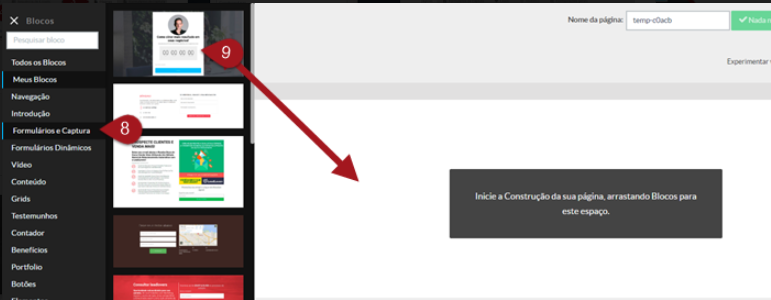 Nº 8 Seleciona a galeria de blocos Formulários de captura