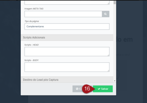 Nº 16 Após ter configurado os links que irão abrir para os novos leads ou leads já existentes, clique em Salvar para salvar a página e criá-la