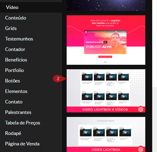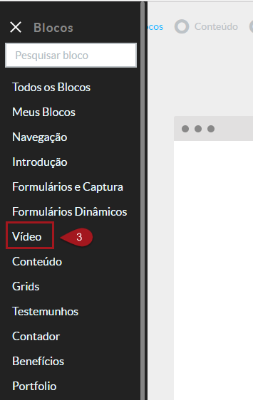 N 3 – Clique na categoria Vídeo no menu lateral do construtor.