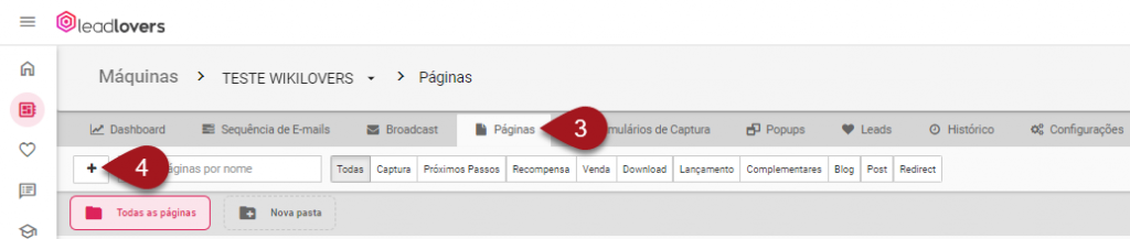 4 – Encontre o botão de + e clique para criar uma nova página.