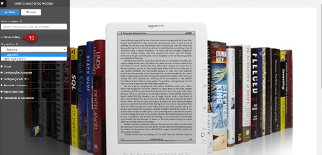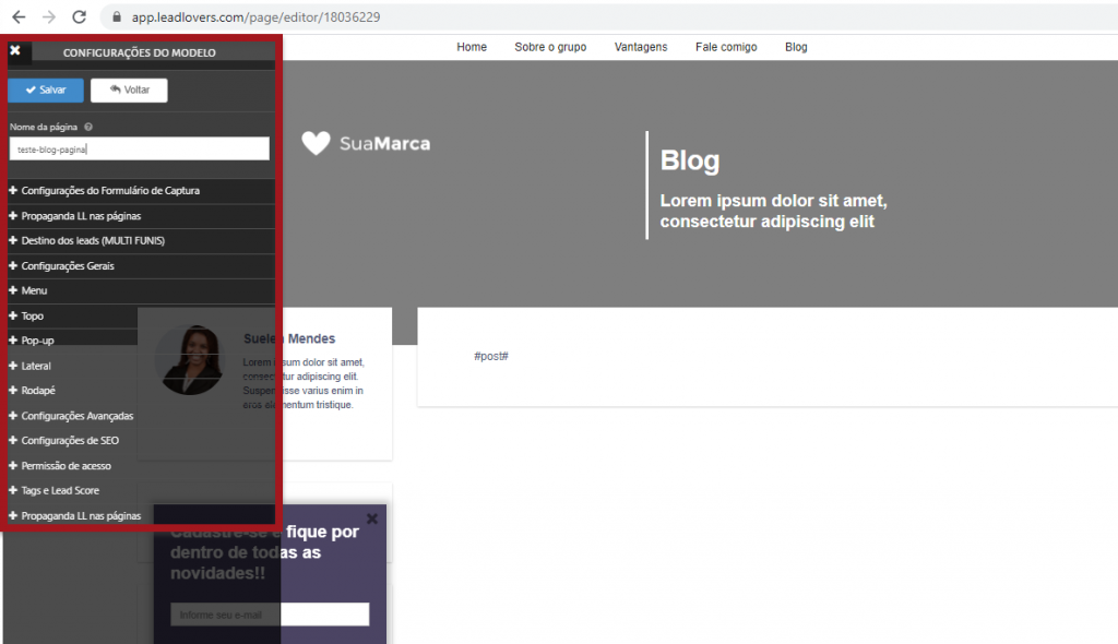 Criando a página do tipo blog no editor de Modelos Prontos.