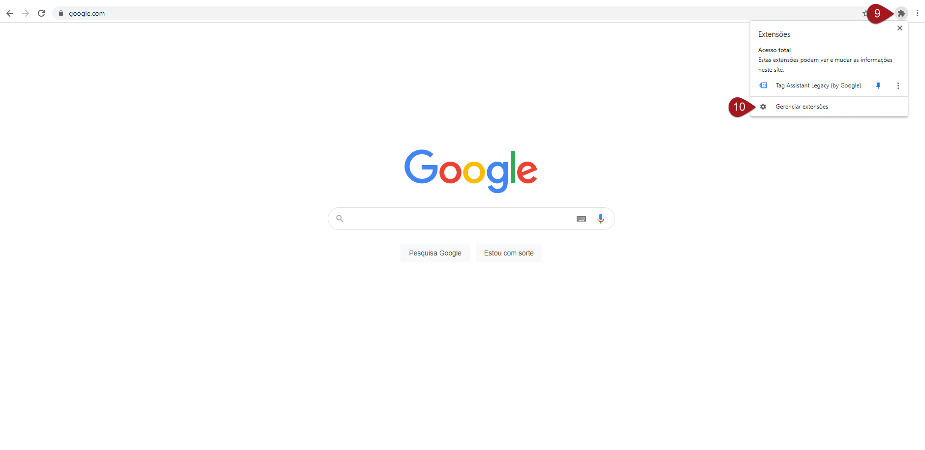 No Google Chrome, clique sobre o ícone de peça de quebra cabeça no canto superior direito.