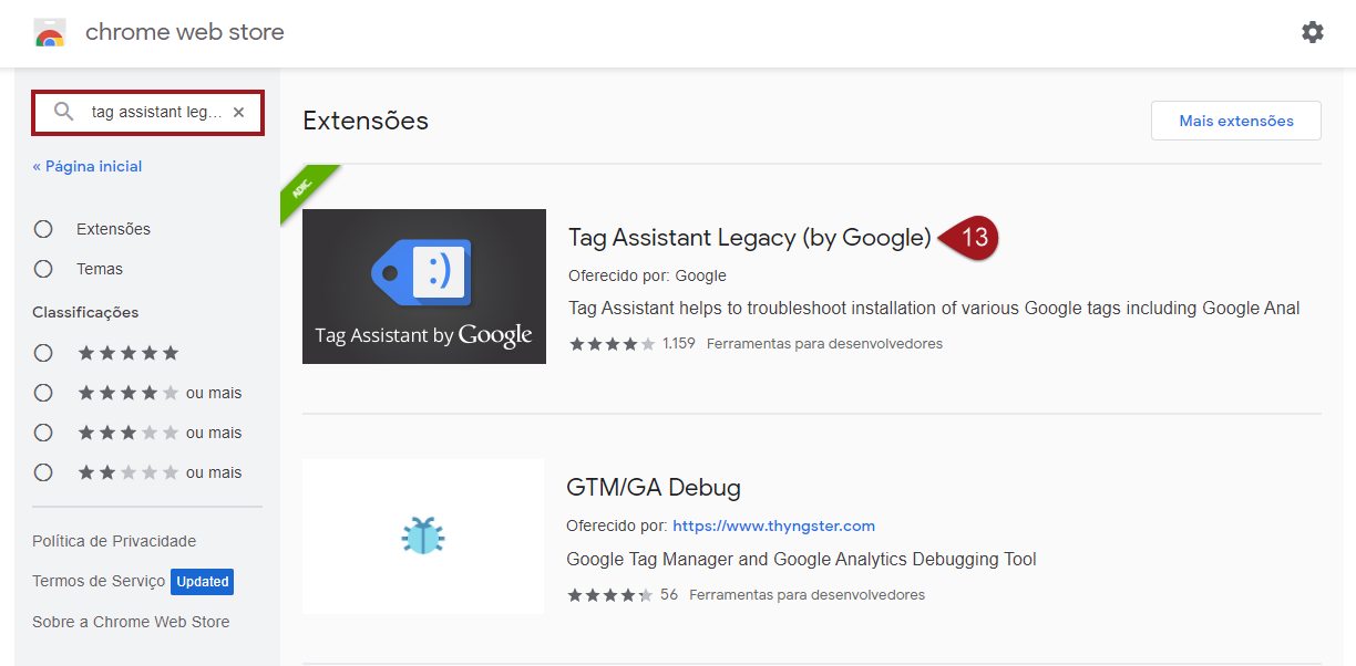 Abrirá uma nova aba. No ícone de busca, escreva: “tag assistant legacy” e escolha a opção indicada na imagem abaixo.