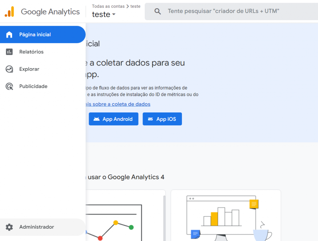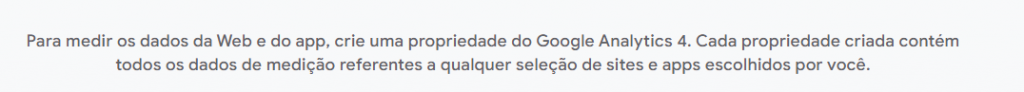 Para medir os dados corretamente, é preciso que as informações em “propriedade” estejam corretas, todos os dados fornecidos precisam estar certos. Obs: Caso queira, é possível criar uma nova propriedade clicando no botão azul: Criar propriedade.\
