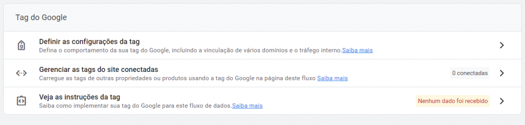 Nº 4 – Clique no fluxo escolhido e no final da página em TAG do Google, clique em vejas as instruções da tag