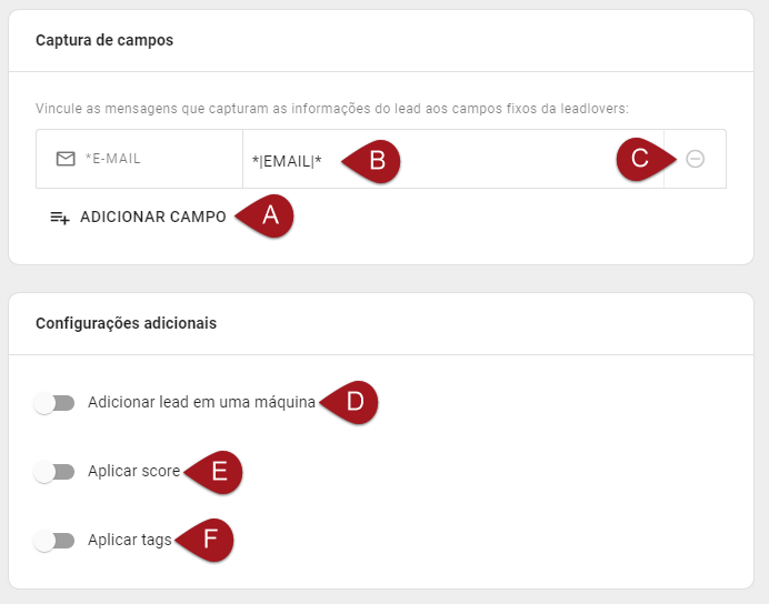 D) Já em Configurações Adicionais é possível ainda especificar em qual Máquina, Funil e Sequência deseja que o lead entra.