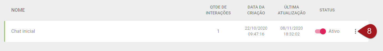 Depois de criar e salvar seu novo chat você será redirecionado para área de organizar os mesmos e verá uma Lista de Chats.