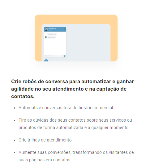 O objetivo dele é que através de configurações pré-determinadas a conversa ocorra de forma natural atendendo as necessidades de maneira rápida e sem precisar de um atendente humano. Através de um fluxograma você pode configurar os diversos caminhos que seu lead possa percorrer na conversa.