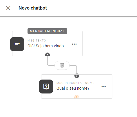 Após adicionar todas as Mensagens e Ações que deseja em seu chat você irá configurar o fluxo da conversa. Para isso, será necessário conectar cada balãozinho na ordem desejada.