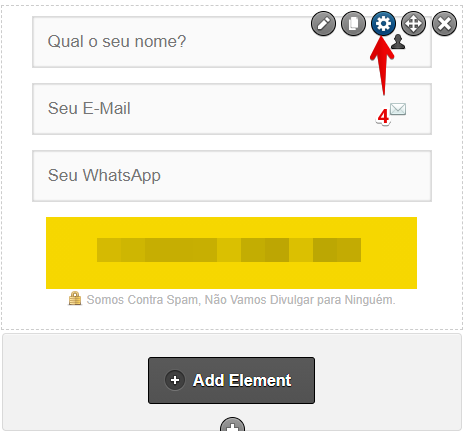 4 – Ao retornar para a tela na página, clique no ícone de engrenagem do formulário.