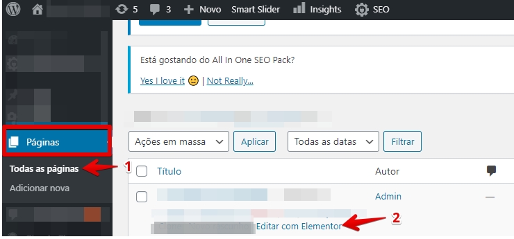 Após logar no WordPress, Acesse aba páginas > todas as páginas.