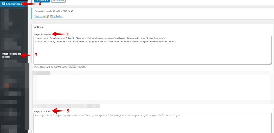 Inserindo scripts HEAD e BODY pelo plugin Headers and Footers