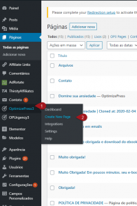 – Primeiro passo é você ter uma página criada e editada com o OptimizePress através do WordPress.