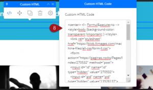 N 8º – Em seguida, volte a sua edição com o optimize e cole o código do form no campo de html.